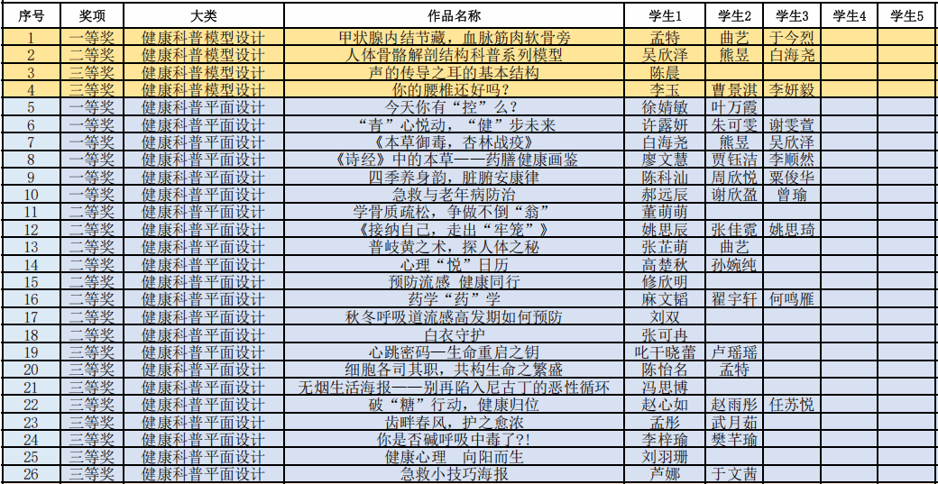 本次校内选拔赛为同学们提供了一个展示才华和锻炼能力的平台,促进了健康科普知识的传播和普及,有助于提高自身专业素养与实践能力、培养团队合作意识与创新创业精神,对推动健康科普知识的普及、提高公众的健康素养与提升个人能力与团队合作能力具有重要意义。